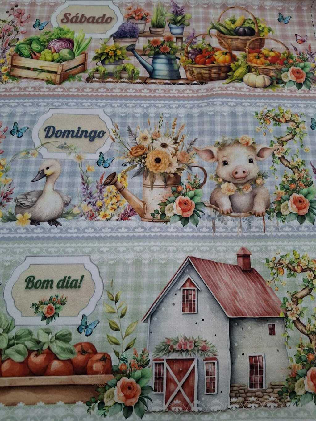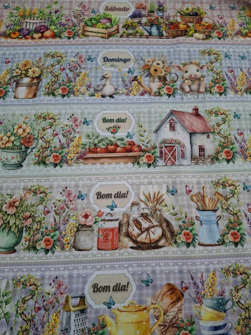 Este corte especial em tricoline digital 100% algodão vem com 10 barrados estampados em um único corte de 55 cm de largura, perfeitos para aplicar em panos de prato, artesanato e costura criativa.